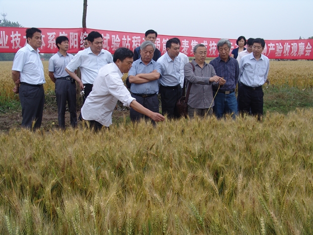 5月18日,國家、河南省小麥產(chǎn)業(yè)技術(shù)體系信陽(yáng)綜合試驗站在信陽(yáng)息縣召開(kāi)稻茬弱筋小麥抗逆高產(chǎn)穩產(chǎn)集成技術(shù)現場(chǎng)觀(guān)摩暨技術(shù)培訓會(huì )。國家小麥產(chǎn)業(yè)技術(shù)體系首席科學(xué)家、全國小麥科技入戶(hù)工程首席專(zhuān)家、中國農科院研究員肖世和博士,農業(yè)部小麥專(zhuān)家指導組副組長(cháng)、國家小麥產(chǎn)業(yè)技術(shù)體系栽培崗位專(zhuān)家、河南農業(yè)大學(xué)郭天財教授,國家小麥產(chǎn)業(yè)技術(shù)體系育種崗位專(zhuān)家、河南省農業(yè)科學(xué)院小麥研究中心主任、許為鋼研究員,河南省農業(yè)科學(xué)院小麥研究中心副主任、河南省小麥產(chǎn)業(yè)技術(shù)體系首席科學(xué)家雷振生研究員,國家小麥產(chǎn)業(yè)技術(shù)體系六安、南陽(yáng)、周口等綜合試驗站站長(cháng)應邀出席會(huì )議。我院院長(cháng)段仁周、黨委書(shū)記韓勛來(lái),市農業(yè)局副調研員陳巍峙,我院副院長(cháng)劉祥臣、王青林、祁玉良,息縣人民政府副縣長(cháng)閆清勇,國家小麥產(chǎn)業(yè)技術(shù)體系信陽(yáng)綜合試驗站站長(cháng)陳金平研究員出席會(huì )議。息縣、羅山、潢川、固始、淮濱五個(gè)國家產(chǎn)業(yè)技術(shù)示范縣農業(yè)局、農科所及部分基層鄉鎮農技站、植保站有關(guān)負責同志和技術(shù)骨干40余人參加了會(huì )議。河南省小麥產(chǎn)業(yè)技術(shù)體系信陽(yáng)綜合試驗站站長(cháng)祁玉良研究員主持會(huì )議。