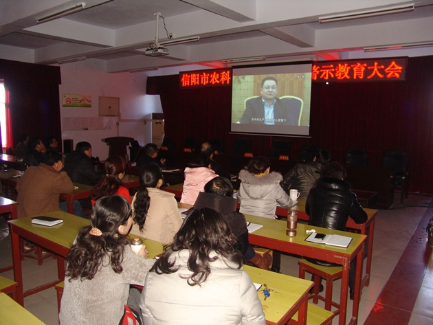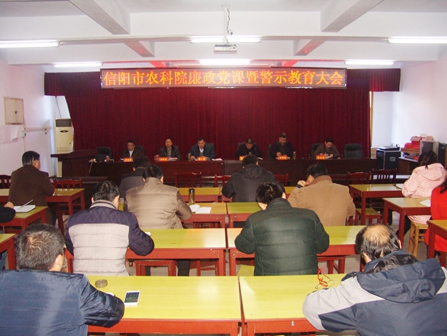 1月20日下午,我院以廉政黨課暨警示教育大會(huì )的形式,組織觀(guān)看了廉政警示教育片《無(wú)路可逃》和《沉淪》,并就春節期間黨風(fēng)廉政建設工作進(jìn)行了安排部署,確保過(guò)一個(gè)廉潔、節儉、清正、祥和的春節,院領(lǐng)導班子成員、副科級以上干部和試驗站站長(cháng)參加了會(huì )議。