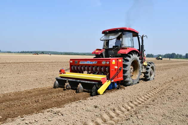 與會(huì )人員現場(chǎng)觀(guān)摩了花生起壟潔區播種機、花生起壟旋播施肥一體機、花生起壟旋播施肥分體機、花生起壟施肥播種機等四款不同播種機型的功能及特點(diǎn),這四款機型都是先起壟后播種模式,可有效保證播種深度的一致性,提升出苗率,可適量提升起壟高度,不受因種子太深影響出苗的限制,比傳統播種模式提前出苗3-5天。
