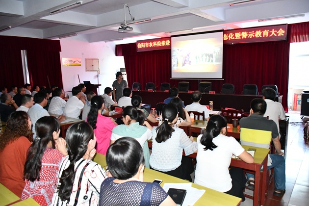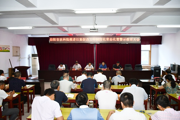 按照《中共信陽(yáng)市紀委關(guān)于做好2018年全市以案促改工作的通知》要求,持續推進(jìn)以案促改工作規范化、制度化、常態(tài)化運行,使全院廣大干部職工切實(shí)筑牢拒腐防變的思想防線(xiàn),8月2日下午,我院召開(kāi)推進(jìn)以案促改工作制度化常態(tài)化暨警示教育大會(huì ),在家的院領(lǐng)導班子成員、全院副科級以上干部、中級職稱(chēng)以上科技人員以及各支部紀檢委員參加了會(huì )議,市紀委監察委駐市農業(yè)局紀檢監察組到會(huì )指導。會(huì )議由副院長(cháng)王青林同志主持。
