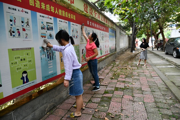 為深入推進(jìn)全國文明城市創(chuàng )建工作,更好地發(fā)揮共產(chǎn)黨員的先鋒模范作用,9月10日下午,我院組織本院100余名黨員志愿者在單位轄區內開(kāi)展了黨員活動(dòng)日衛生大掃除活動(dòng)。