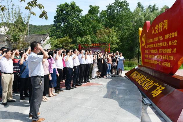 黨員們先后來(lái)到紅二十五軍軍部舊址何氏祠、烈士陵園、紅軍醫院舊址等地,仔細聆聽(tīng)工作人員的講解,認真觀(guān)看一組組珍貴的歷史圖片和文獻資料,真切感受到吳煥先、徐海東等老一輩無(wú)產(chǎn)階級革命家對理想信念的執著(zhù)、對人民群眾的深情、對革命事業(yè)的忠誠,讓大家從精神上、思想上經(jīng)受了巨大洗禮。在何家沖政治文化廣場(chǎng)上,全體黨員面對黨旗,莊嚴地舉起右手,重溫了入黨誓詞,表達了對黨忠誠、為黨的事業(yè)奮斗終身的決心和愿望。