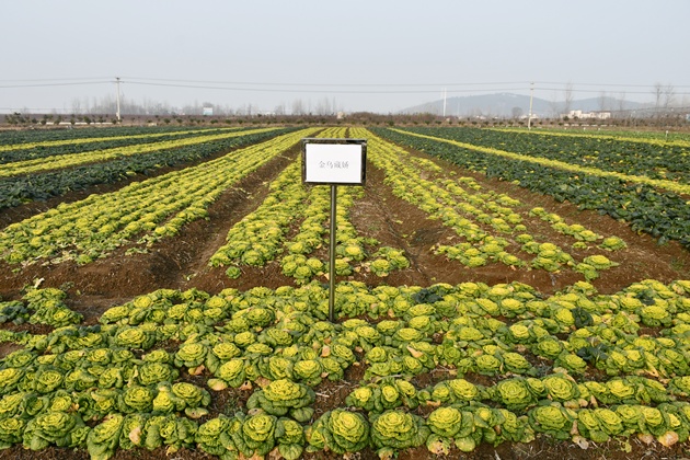 “金烏藏嬌”是我院與華一種業(yè)集團聯(lián)合選育的最新改良雜交黃心菜品種。當前正值隆冬,雪后乍晴。在合作社李畈村生產(chǎn)基地內,采用精量機播與直播的10畝“金烏藏嬌”黃心菜品種似遍地黃花,金光燦爛,謂之“雪里金花”或“鋪銀疊金”均當之無(wú)愧。