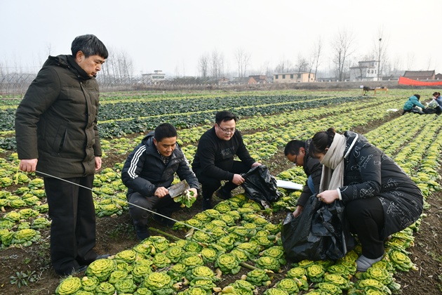 1月14日,我院邀請省農科院、信陽(yáng)農林學(xué)院、市蔬菜辦、市種子管理站、市植保植檢站、浉河區農業(yè)農村局專(zhuān)家,對河南省“四優(yōu)四化”優(yōu)質(zhì)蔬菜專(zhuān)項露地蔬菜專(zhuān)題黃心菜標準化生產(chǎn)技術(shù)集成及示范任務(wù)基地——浉河區富華種養殖專(zhuān)業(yè)合作社示范種植的黃心菜新品種“金烏藏嬌”進(jìn)行實(shí)地測產(chǎn)。
