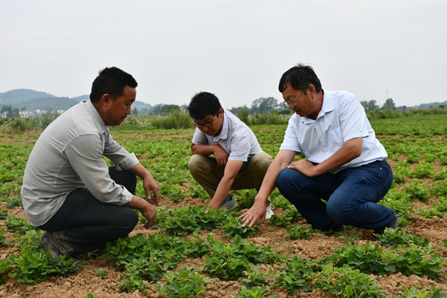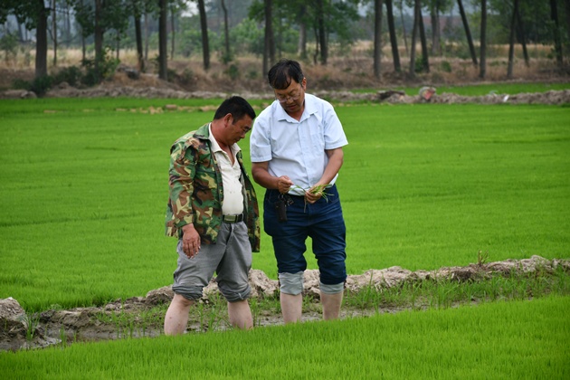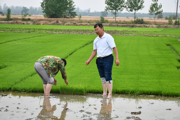 5月29日,息縣鴻潤家庭農場(chǎng)項店鎮李樓村生產(chǎn)基地,我院資源環(huán)境學(xué)科專(zhuān)家潘茲亮研究員深入到田間地頭察看田間旱情、水稻秧情,開(kāi)展病蟲(chóng)害調查,與當地農技人員一起分析旱情影響,研究應變措施,制訂有針對性的抗旱保種技術(shù)方案,指導篩選輕簡(jiǎn)、實(shí)用、適用的田間管理技術(shù),提出了適當壓縮水稻種植面積,擴大綠肥、大豆、玉米、芝麻、花生種植面積的對策建議。