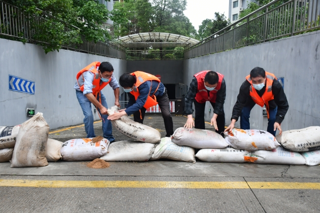 演練開(kāi)始,主題以防范外圍溢水倒灌進(jìn)入地下停車(chē)場(chǎng)為險情處置場(chǎng)景,現場(chǎng)模擬災情突發(fā),進(jìn)行防汛搶險實(shí)戰演練。全體演練人員服從指揮、分工協(xié)作,鏟沙、牽袋、搬運、堆碼、受災群眾的轉移等動(dòng)作規范,秩序井然,在大家的通力合作下,防汛堤壩迅速筑成,圓滿(mǎn)完成演練任務(wù)。