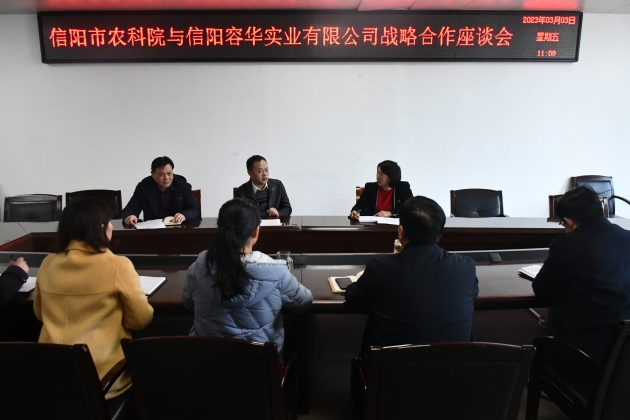 為進(jìn)一步深化科研院所與企業(yè)戰略合作,實(shí)現院企共贏(yíng),3月3日上午,我院與信陽(yáng)容華實(shí)業(yè)有限公司召開(kāi)院企戰略合作座談會(huì )。院黨委書(shū)記李杰、總農藝師段斌,信陽(yáng)容華實(shí)業(yè)有限公司負責人王容華出席本次座談會(huì )?蒲锌萍跋嚓P(guān)研究所負責同志參加本次會(huì )議。