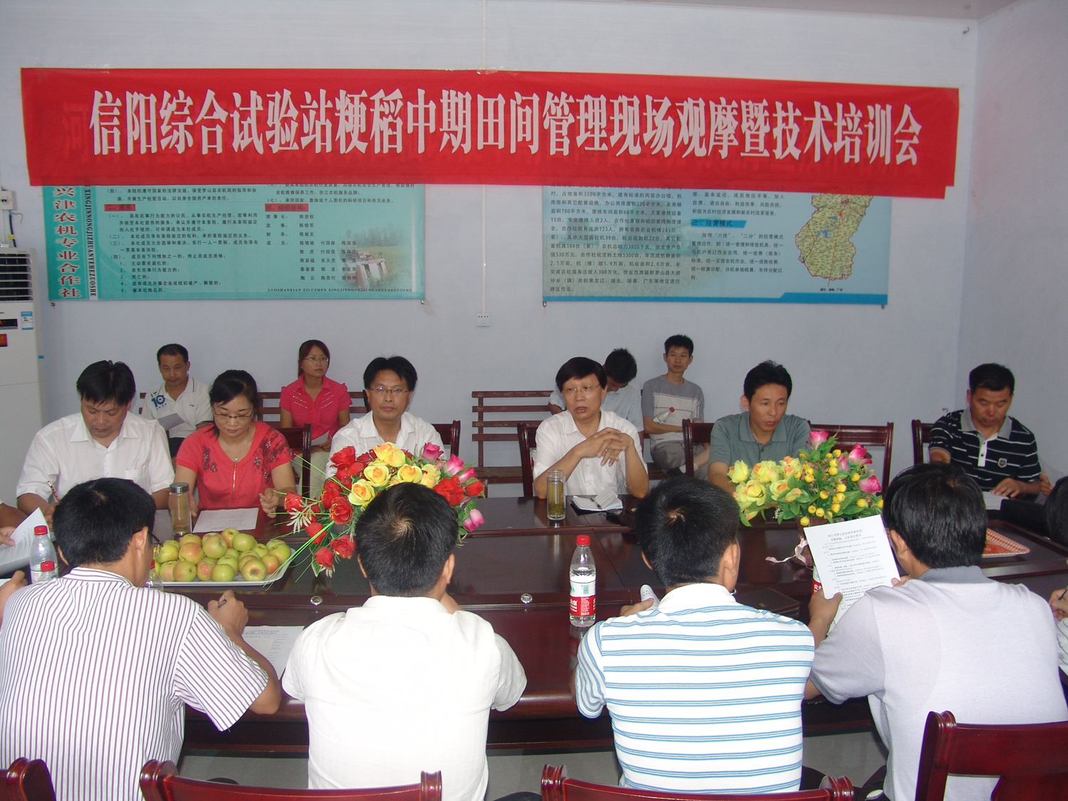 國家水稻產(chǎn)業(yè)技術(shù)體系信陽(yáng)綜合試驗站召開(kāi)全市粳稻中期田間管理現場(chǎng)觀(guān)摩暨技術(shù)培訓會(huì )