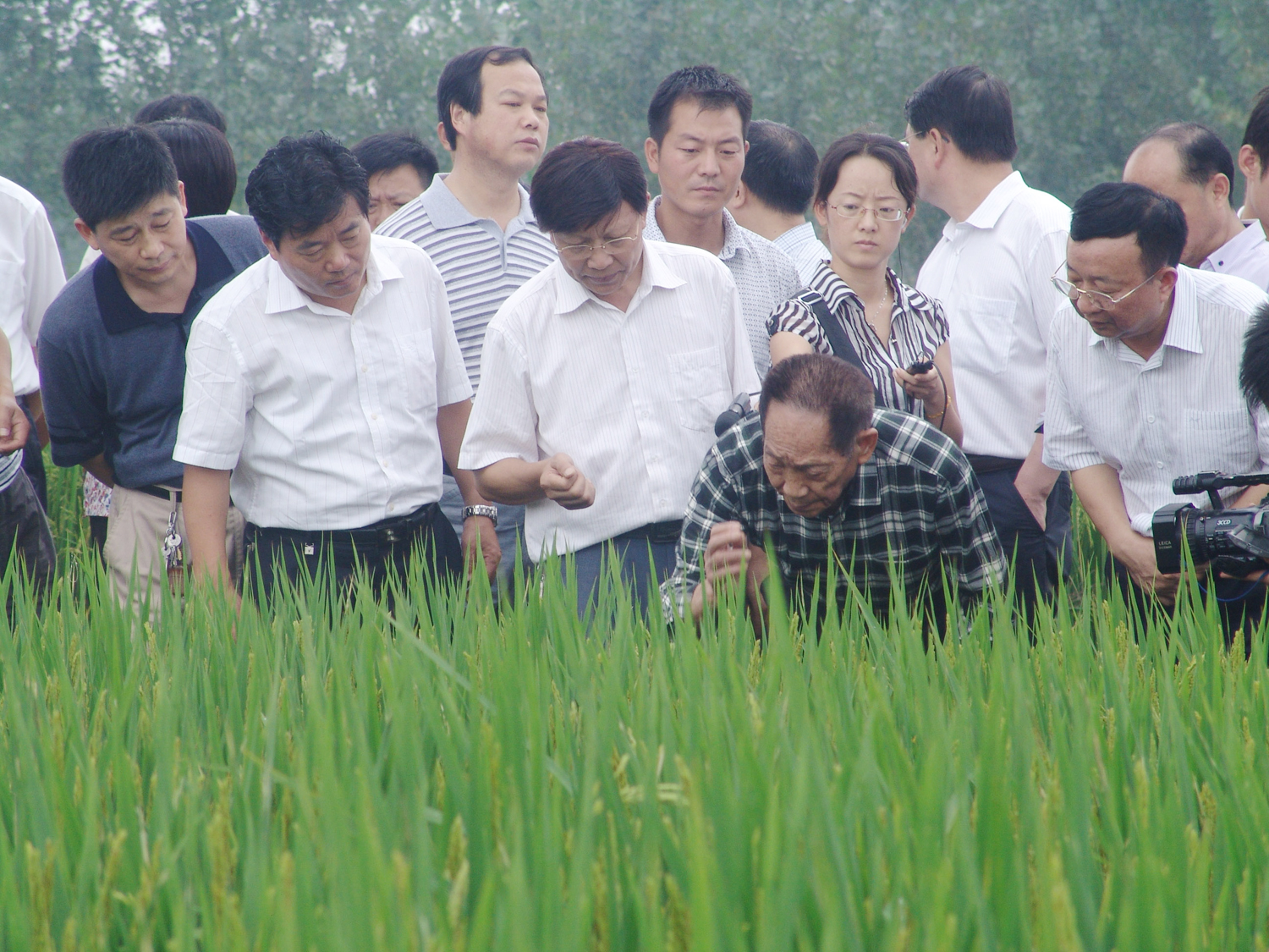 827,“世界雜交水稻之父”、中國工程院院士袁隆平在信陽(yáng)活動(dòng)期間專(zhuān)程前往我所位于羅山縣子路鎮問(wèn)津種養殖專(zhuān)業(yè)合作社的“秈改粳”示范基地考察粳稻生產(chǎn)情況。