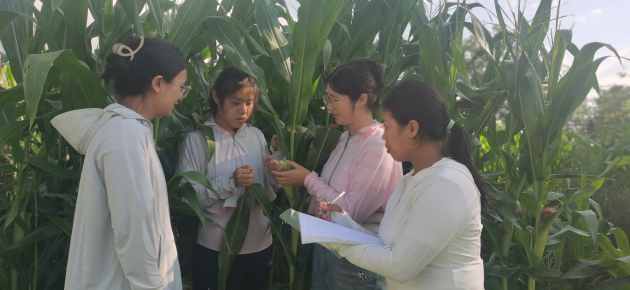 進(jìn)入七月中下旬以來(lái),信陽(yáng)經(jīng)歷多輪大范圍、高強度降雨,對農業(yè)生產(chǎn),尤其是玉米生長(cháng)造成了極為不利影響。當前信陽(yáng)春玉米正處于乳熟期至蠟熟期,是桃蛀螟等多種害蟲(chóng)及褐斑病等病害的高發(fā)期,做好此時(shí)期病蟲(chóng)害的防控是奪取秋糧豐收的關(guān)鍵。近日,我院植物保護研究所、國家植物保護信陽(yáng)觀(guān)測實(shí)驗站、河南省信陽(yáng)作物有害生物野外科學(xué)觀(guān)測研究站、河南省作物有害生物綜合防控工程技術(shù)中心科研人員一行7人分別到信陽(yáng)各縣區開(kāi)展玉米病蟲(chóng)害調查,了解和掌握玉米病蟲(chóng)害發(fā)生種類(lèi)及為害情況。