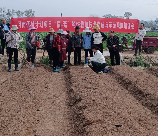 2024年,在羅山縣泰禾農業(yè)科技有限公司和潢川縣川香家庭農場(chǎng)基地,河南優(yōu)特產(chǎn)業(yè)食用菌專(zhuān)項、我院示范了60畝“稻-菇”輪作生產(chǎn),利用稻草和稻殼60多萬(wàn)斤。下一步,我院將繼續強化技術(shù)研發(fā)與支撐,加大優(yōu)特產(chǎn)業(yè)食用菌專(zhuān)項“稻-菇”輪作生產(chǎn)模式的示范推廣,細化指導服務(wù)措施,充分利用當地得天獨厚的氣候條件和冬閑稻田,把水稻、小麥、玉米等秸稈過(guò)菇還田,為藏糧于地和增收致富作出新的貢獻。