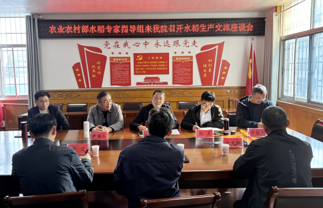最后,調研組一行來(lái)到我院,聽(tīng)取了水稻科研人員關(guān)于水稻科技創(chuàng )新、成果轉化和科技服務(wù)等情況介紹,并進(jìn)行互動(dòng)交流。大家圍繞推動(dòng)水稻產(chǎn)業(yè)高質(zhì)量發(fā)展、水稻種質(zhì)資源挖掘保護利用以及如何加快發(fā)展農業(yè)新質(zhì)生產(chǎn)力和實(shí)現農業(yè)產(chǎn)業(yè)化等進(jìn)行了深入探討。