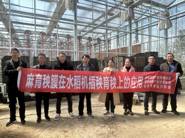 春耕時(shí)節,水稻育秧正當時(shí)。為持續推進(jìn)麻膜育秧技術(shù)在水稻生產(chǎn)中的應用,3月18日,我院、國家麻類(lèi)產(chǎn)業(yè)技術(shù)體系信陽(yáng)綜合試驗站邀請國家和省水稻體系專(zhuān)家組成服務(wù)隊,深入潢川縣金業(yè)種植養殖專(zhuān)業(yè)合作社、天意家庭農場(chǎng),跟進(jìn)麻育秧膜在水稻工廠(chǎng)化育秧上的應用,實(shí)地開(kāi)展麻膜育秧技術(shù)指導,為春耕生產(chǎn)保駕護航。