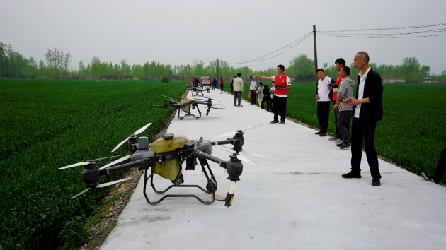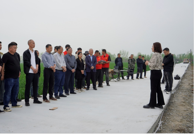 觀(guān)摩會(huì )現場(chǎng),鎮分管農業(yè)領(lǐng)導、小麥種植大戶(hù)代表觀(guān)摩了示范區植保無(wú)人機現場(chǎng)飛防作業(yè)。只見(jiàn)一架架無(wú)人機在麥田上空盤(pán)旋,均勻地噴灑著(zhù)藥劑,作業(yè)規模宏大,效果顯著(zhù)。大家認真學(xué)習“一噴三防”關(guān)鍵技術(shù),共同提升淮濱縣小麥種植管理水平,積極響應全國糧油作物大面積單產(chǎn)提升政策。