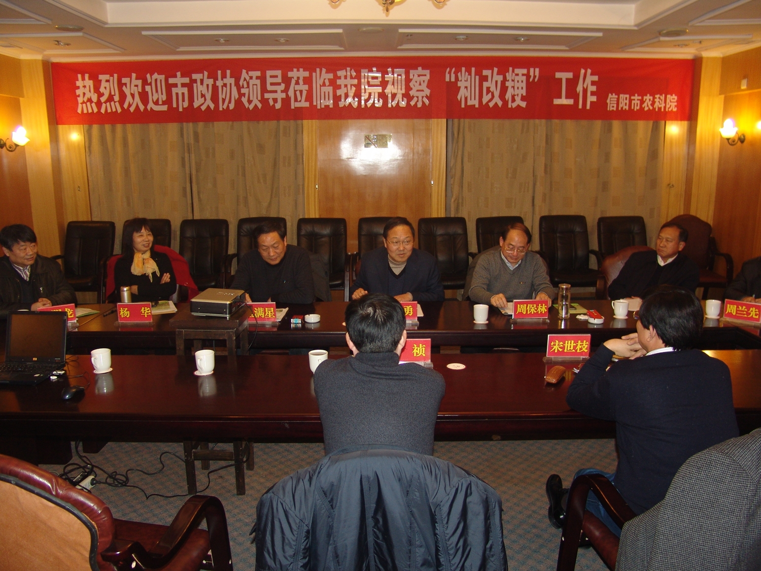 霍勇、周保林一行首先饒有興致地觀(guān)看了由市科技局、市農科院聯(lián)合制作的專(zhuān)題片《粳稻香飄豫南大地》,隨后聽(tīng)取了我院主要負責同志關(guān)于河南省重大科技專(zhuān)項“豫南稻區秈改粳技術(shù)研究及產(chǎn)業(yè)化”今年的實(shí)施情況的匯報。據介紹,秈改粳重大科技專(zhuān)項的啟動(dòng),省市政協(xié)委員發(fā)揮了重要作用,進(jìn)行了連續兩年的政協(xié)提案。該項目自今年2月正式啟動(dòng)實(shí)施以來(lái),各項研究進(jìn)展順利,取得了階段性成果,豫南秈改粳產(chǎn)業(yè)化進(jìn)程加快,粳稻種植面積進(jìn)一步擴大,已經(jīng)突破了100萬(wàn)畝,其中我市達到60萬(wàn)畝,產(chǎn)生了巨大的經(jīng)濟和社會(huì )效益,在社會(huì )上產(chǎn)生了強烈的反響。