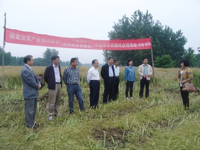 國家油菜產(chǎn)業(yè)技術(shù)體系信陽(yáng)綜合試驗站召開(kāi)雙低油菜簡(jiǎn)化高效生產(chǎn)技術(shù)示范與機械收獲現場(chǎng)觀(guān)摩會(huì )