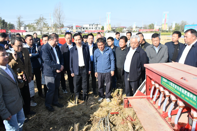 一、10月22日,由國家小麥產(chǎn)業(yè)技術(shù)體系、信陽(yáng)市人民政府主辦,市農科院、市農業(yè)農村局、息縣人民政府承辦,息縣宏升糧食制品有限公司協(xié)辦的國家小麥產(chǎn)業(yè)技術(shù)體系“信陽(yáng)稻茬小麥免耕帶旋播種現場(chǎng)觀(guān)摩暨技術(shù)培訓會(huì )”在息縣成功召開(kāi)。國家小麥產(chǎn)業(yè)技術(shù)體系首席科學(xué)家劉錄祥研究員、河南農業(yè)大學(xué)郭天財教授、信陽(yáng)市副市長(cháng)汪明君、市農科院黨組書(shū)記李杰等出席會(huì )議。汪明君副市長(cháng)在致辭中表示,國家小麥產(chǎn)業(yè)技術(shù)體系“信陽(yáng)市稻茬小麥免耕帶旋播種技術(shù)”現場(chǎng)觀(guān)摩暨技術(shù)培訓會(huì )的召開(kāi),是信陽(yáng)堅決落實(shí)“扛穩糧食安全這個(gè)重任”的重大舉措,也是稻茬小麥播種新技術(shù)在信陽(yáng)落地開(kāi)花的重要見(jiàn)證。信陽(yáng)是全省小麥產(chǎn)量潛力最大的區域,免耕帶旋播種技術(shù)作為一項小麥栽培新技術(shù),基于機具設計創(chuàng )新和農藝優(yōu)化創(chuàng )新而成,能實(shí)現一播全苗,有效解決了稻茬小麥“播不下、出不齊、長(cháng)不好”的技術(shù)難題,節本增產(chǎn)效果顯著(zhù)。此次技術(shù)培訓會(huì )的舉辦,為信陽(yáng)弱筋小麥產(chǎn)業(yè)科技賦能、品質(zhì)提升、品牌建設提供了有利契機,也為加快老區振興發(fā)展注入新的強大動(dòng)力。相信在國家小麥產(chǎn)業(yè)技術(shù)體系各位專(zhuān)家的悉心指導下,信陽(yáng)弱筋小麥產(chǎn)業(yè)將會(huì )結出更加豐碩之果。在室內培訓環(huán)節,李杰就舉辦這次現場(chǎng)會(huì )的目的和基本情況作了介紹,希望參會(huì )的種麥大戶(hù)、新型經(jīng)營(yíng)主體及企業(yè)負責人虛心學(xué)習,交流經(jīng)驗,掌握技術(shù),在抓好今年小麥播種工作的同時(shí),要努力發(fā)揮“主力軍”“領(lǐng)頭羊”的作用,讓新技術(shù)更大范圍、更大面積得到推廣應用,以實(shí)際行動(dòng)推動(dòng)信陽(yáng)小麥產(chǎn)業(yè)綠色高質(zhì)量發(fā)展。